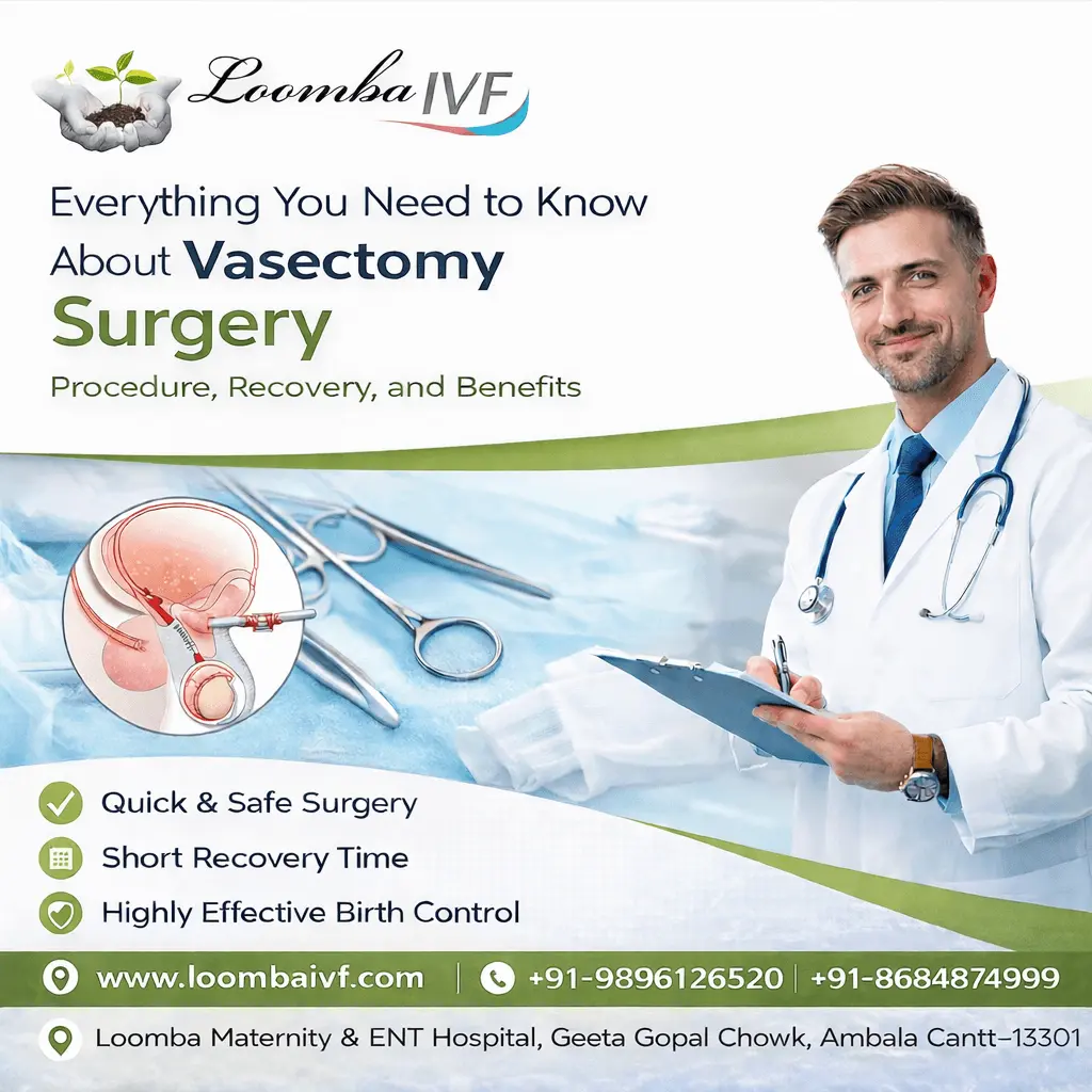If you are considering vasectomy surgery in Ambala, the experienced medical team at Loomba IVF is committed to providing ethical guidance, advanced care, and complete confidentiality. Book a consultation today to discuss whether vasectomy surgery is the right choice for you and your family.